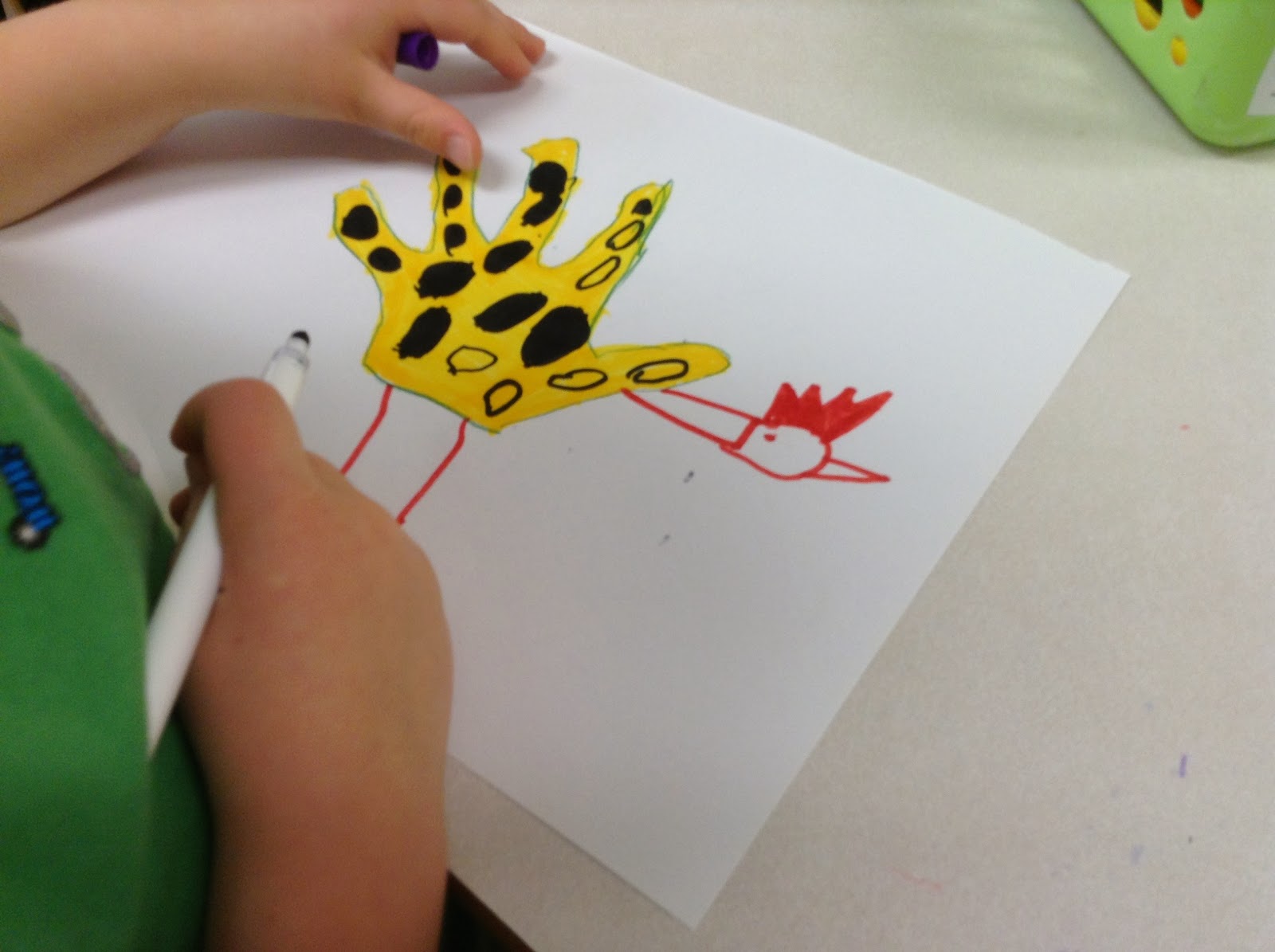 | C is making a Thanksgiving card with a picture of a turkey on it |